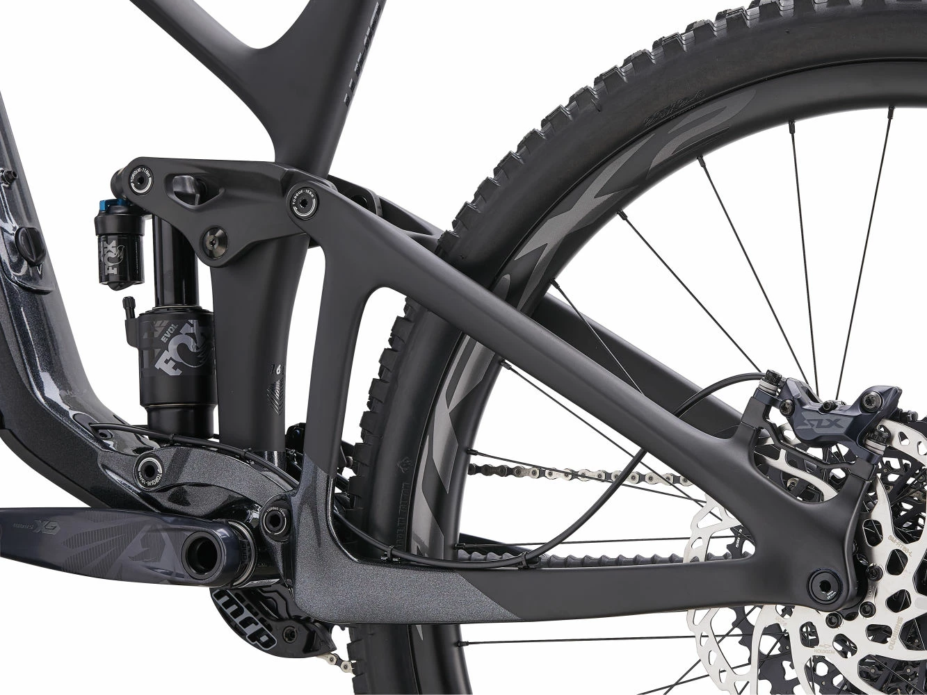 Une nouvelle suspension arrière Maestro avec un plus grand débattement (160mm) a été développée et testée sous les conditions extrêmes des Enduro World Series. Les amortisseurs ont une course plus longue (62,5 mm contre 60mm sur la génération précédente). La biellette supérieure en composite Advanced Forged ajoute de la rigidité et diminue le poids global.